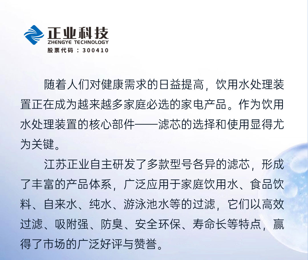 安全凈水從芯開始,江蘇正業濾芯高效過濾之選