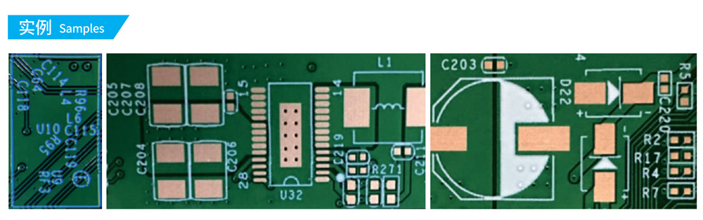1、白油塊效果好:系統自動識別白油塊和字符,使用可變式墨滴技術,有效解決白油塊條紋厚度不均勻和小字符模糊問題,可根據客戶要求對油墨厚度進行調整;